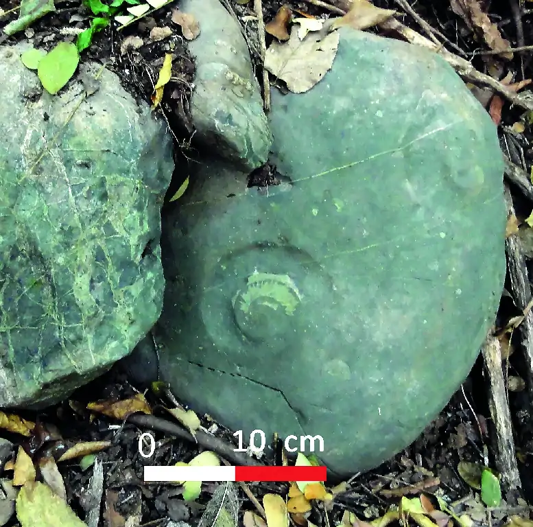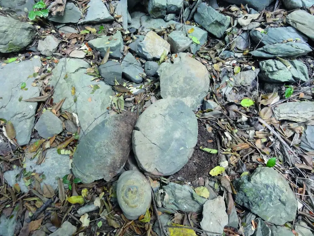 Rocas redondeadas con fósiles