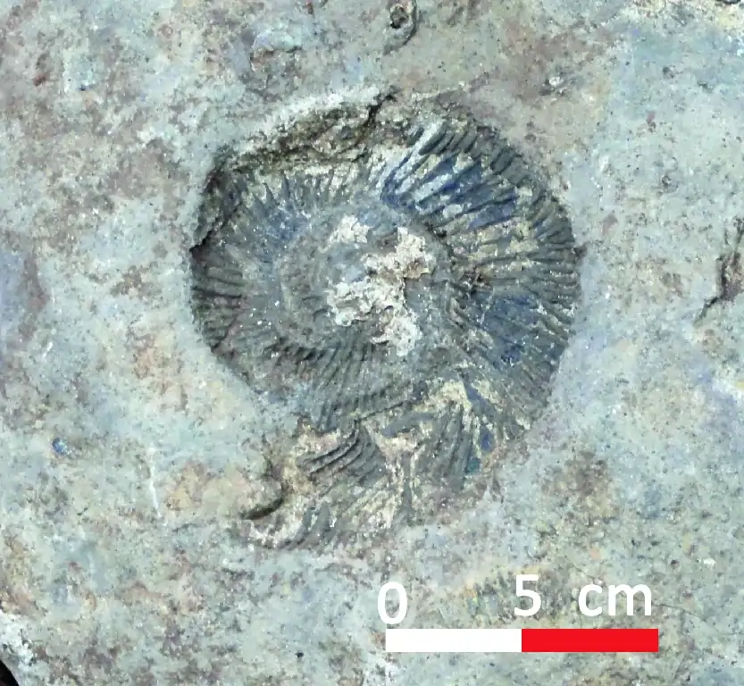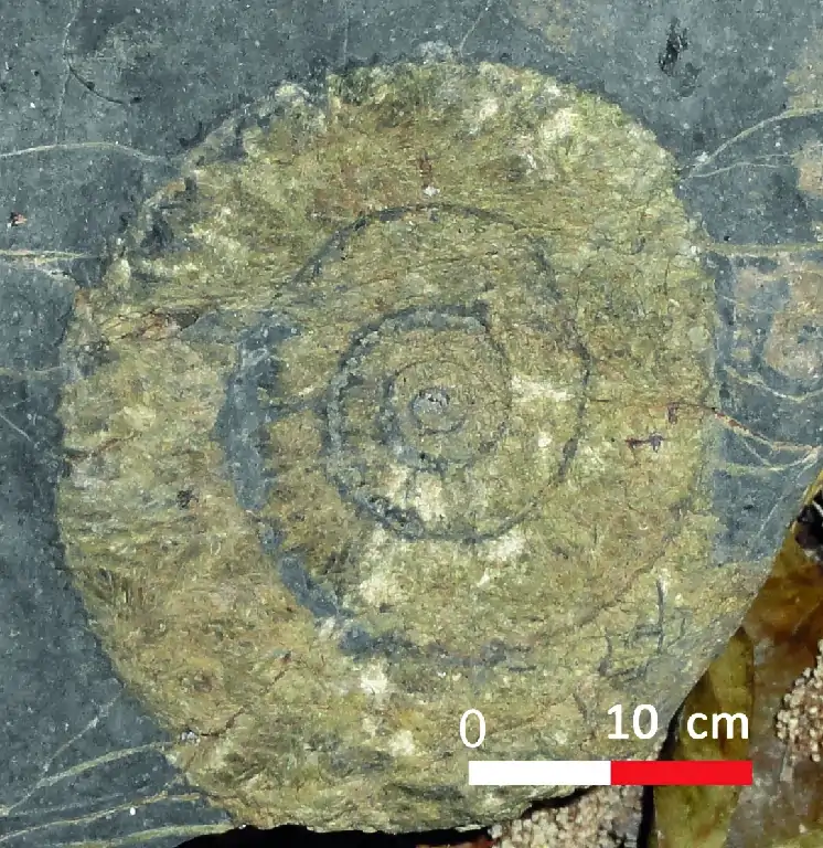 «Queso» de grandes dimensiones cortado con fósiles en el interior.