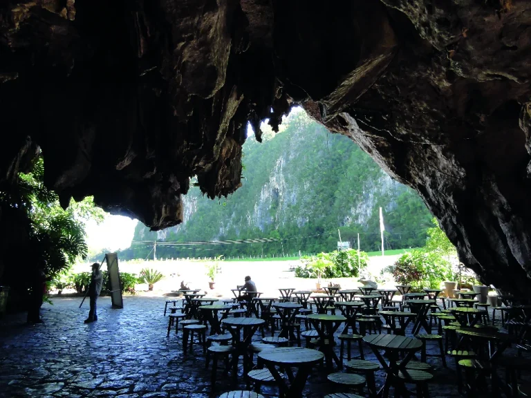 Excelente vista panorámica de los mogotes de Viñales desde un lugar privilegiado: el hotel la Ermita. Paso por la impresionante puerta de Ancón. Acceso a la cueva túnel de José Miguel (Cuevas de Viñales) con salida al Palenque de los Cimarrones.