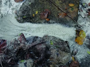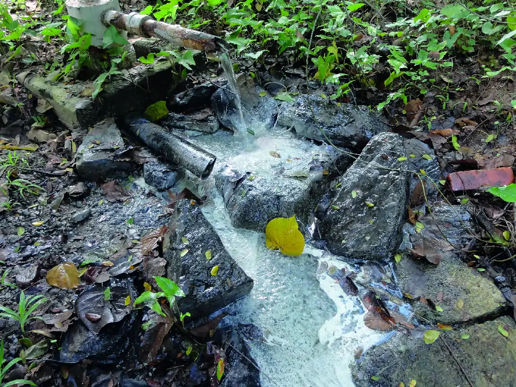 Seguimos por la carretera hacia el norte y a unos 700 m, estacionamos el vehículo y buscamos en el costado izquierdo de la carretera un sondeo (pozo) del cual sale agua tibia. A simple vista ya vemos que no se trata de agua normal, ya que origina unos filamentos de color blanquecinos y grisáceos claros formados por microorganismos que habitan en este tipo de aguas.