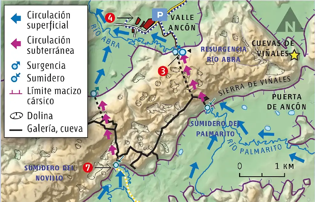 La morfología especial de la zona de Viñales debe su origen a procesos cársicos. El agua disuelve las calizas formando cuevas, simas, ríos subterráneos, cañones, etc. Pero este proceso en un clima tropical da lugar a formas más extremas que en climas más fríos y el resultado son las figuras emblemáticas de los mogotes y abras. Hay que destacar este como un proceso cársico muy importante que sólo se encuentra en pocas zonas cársicas del mundo. Se trata de la existencia de ríos que tienen tramos que fluyen superficialmente y otros subterráneamente. En esta zona existen varios casos como el de Zacarías (itinerarios 2 y 4) que se hace subterráneo y vuelve a surgir en la cueva del Indio, el complejo cársico de Santo Tomás (itinerario 8) y el de los ríos Palmarito y Novillo que después de circular superficialmente varios kilómetros, atraviesan subterráneamente la sierra de Viñales para resurgir en el Valle Ancón, formando el río Abra.