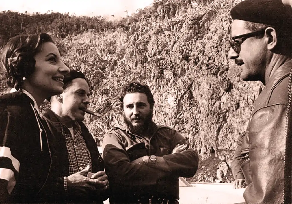 El pintor Leovigildo González junto al Comandante en Jefe Fidel Castro Ruz y la bailarina Alicia Alonso intercambian sobre la obra.