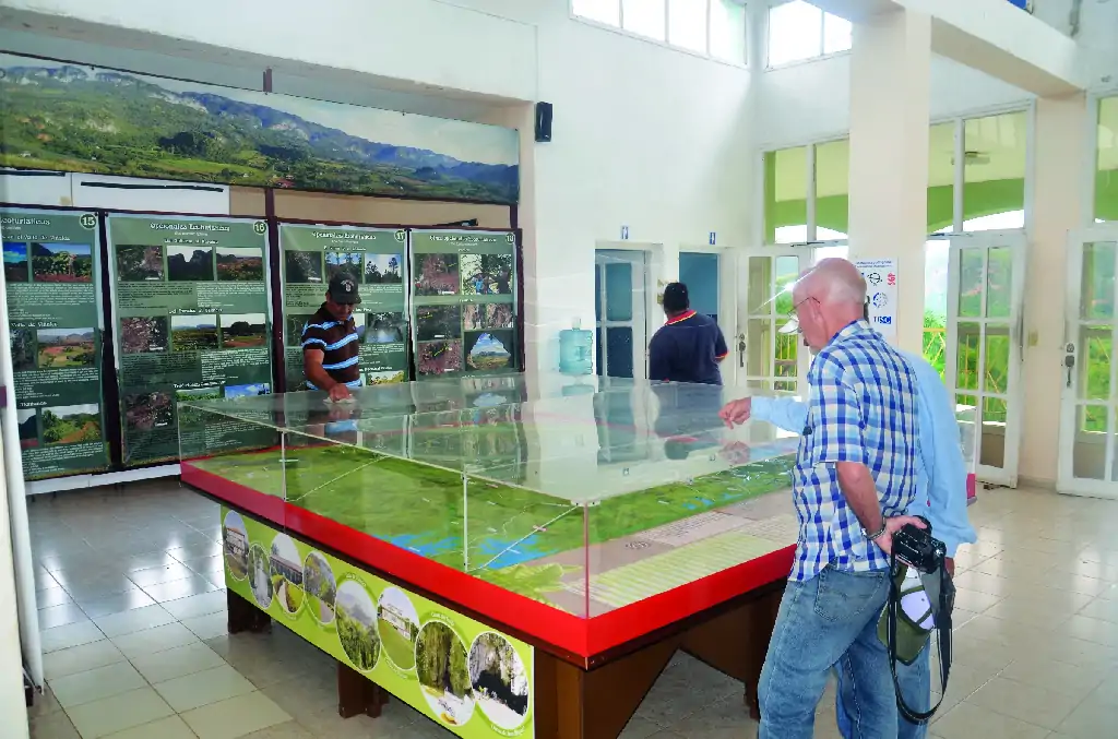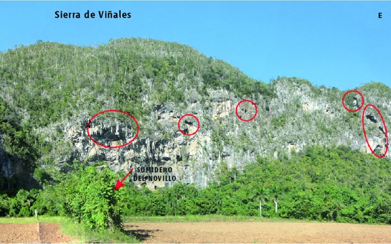 El itinerario se inicia en los Jazmines, mirador excepcional del valle de Viñales y visita el Centro de Visitantes del Parque Nacional Viñales con información y una maqueta de la zona. La siguiente parada es en la entrada de Dos Hermanas, un ejemplo de rocas aisladas por la erosión que recuerda un pequeño «Stonehenge». Mural de la Prehistoria, pinturas alegóricas a la historia de la evolución geológica de Cuba en una pared rocosa de un mogote. Visita al museo paleontológico de Dos Hermanas. Panorámica hacia el sur de los mogotes y sumidero del Novillo, río que cruza la sierra de Viñales para volver a resurgir en la zona de Ancón (Itinerario 5).