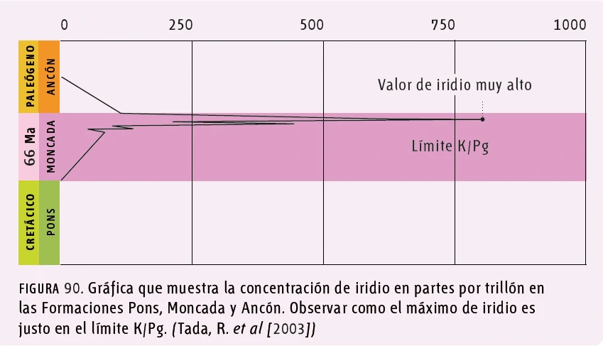 Sabemos que en el límite entre el Cretácico y el Paleoceno, hace 66 millones de años, fue cuando se produjo una extinción masiva de organismos, entre los más afectados fueron los dinosaurios, unos animales de dimensiones gigantescas que fueron dueños del planeta durante más de 180 Ma, desde el Triásico hasta el Cretácico Superior. A partir de aquel momento, el vacío ecológico que dejaron los dinosaurios se llenó con una gran proliferación de los mamíferos. Durante muchos años fue un misterio el porqué de la extinción de los dinosaurios. Los científicos se preguntaban cuál había sido la causa, barajando diversas hipótesis. Pero no se halló una respuesta satisfactoria hasta que se descubrió, en varios lugares del mundo, que en los sedimentos situados justo entre el Cretácico y el Paleoceno había una alta concentración de iridio. A este nivel se le denomina límite K/Pg (límite entre el Cretácico Superior (K) y el Paleógeno (Pg), hace 66 millones de años. El iridio es un elemento que no abunda en la Tierra, pero sí en los meteoritos. Esto sugirió la posibilidad de que el impacto de un gran meteorito podía ser el responsable de la muerte de tantos organismos. Faltaba encontrar el cráter fabuloso originado por dicho impacto. Hasta que se descubrió, en el noroeste de la península de Yucatán (México), el Chicxulub un enorme cráter de más de 180 km de diámetro situado no lejos de la antigua Cuba. En él se encontraron numerosas pruebas de que este cráter fue originado por el impacto de un meteorito: presencia anómala de iridio, tectitas (vidrio natural originado por el impacto de un meteorito), anomalías gravitatorias y cuarzo de impacto.